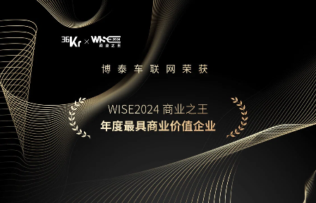 11月26日,36氪主办的“WISE2024 商业之王”重磅发布了年度企业系列名册。博泰车联网凭借创新科技实力、产业生态贡献和应用实践落地等多方面领先优势,成功入选“WISE2024 商业之王年度最具商
