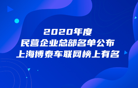 上海市商务委发布了《2020年度民营企业总部名单》。这是上海认定的第三批民营企业总部,共81家。上海博泰悦臻电子设备制造有限公司(以下简称“上海博泰车联网”)榜上有名,位列第24。