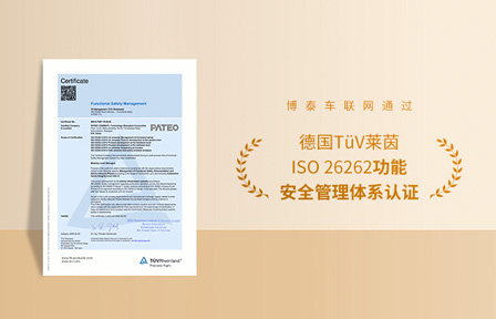 2022年9月20日,博泰车联网获得了由国际独立第三方检测、检验和认证机构德国TÜV莱茵(以下简称“TÜV莱茵”)颁发的ISO 26262功能安全管理体系ASIL D等级认证证书。
