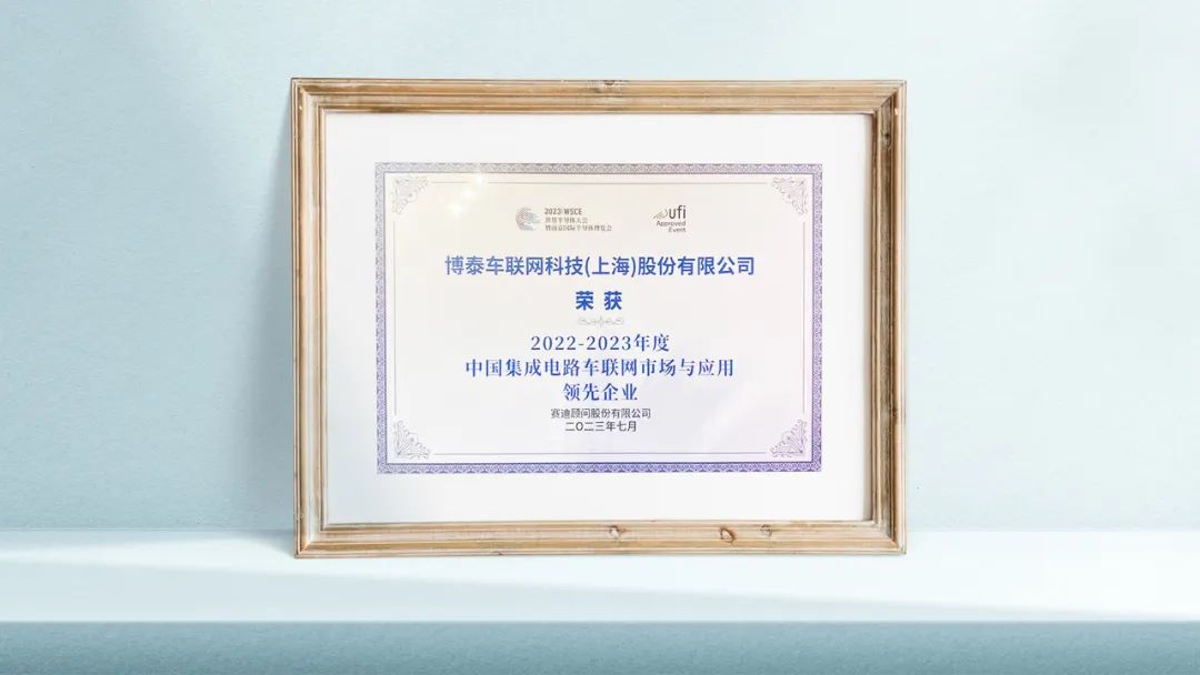 博泰车联网凭借在汽车电子集成电路领域的创新技术积累,及丰富的产业落地成果,接连获得由赛迪顾问与芯合汇颁发的“中国IC独角兽企业”,以及由赛迪顾问颁发的“2022-2023年度中国集成电路车联网市场与应用领先企业”两项殊荣,这也是博泰车联网在近年内举办的世界半导体大会中再次荣膺这两项大奖。
