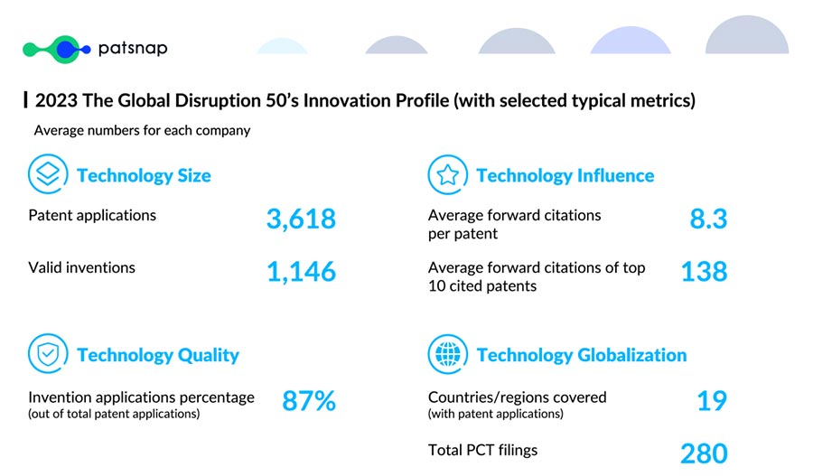 具体来看,一家全球科创新锐企业的典型“创新特征”是拥有约3600件专利申请,其中,发明专利申请约占87%;平均每件专利被引用达8次以上;平均在19个国家/地区布局了专利。