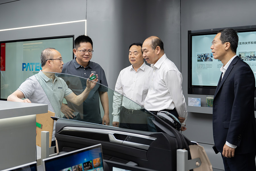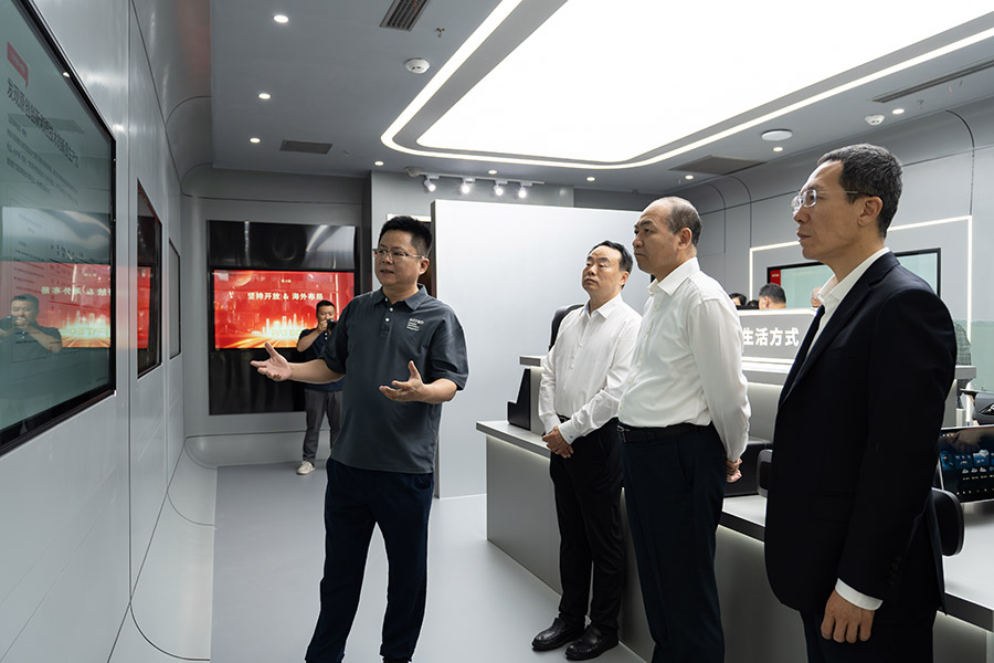 在博泰总部新落成的展厅,博泰创始人应宜伦向邱小平一行介绍了博泰的全球化布局、跨国经营、科技创新等概况。邱小平对博泰的发展战略、经营思路给予了高度认可。