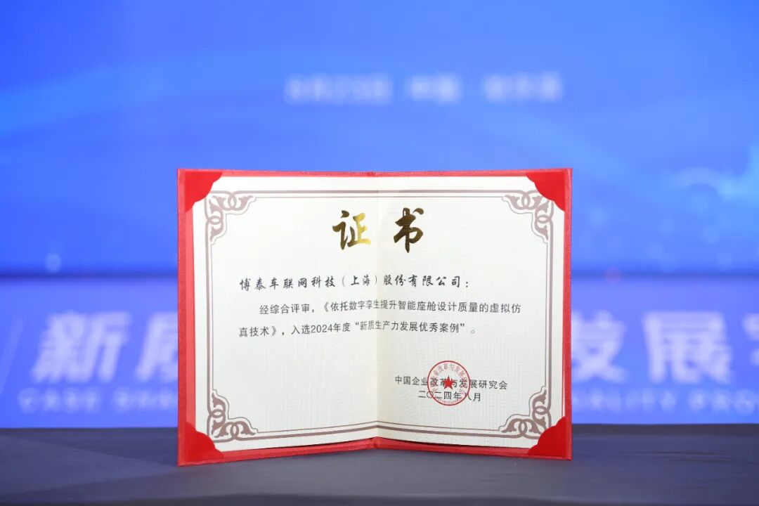 2024太阳岛企业家年会·新兴向荣 质胜未来——2024新质生产力发展案例分享会于8月23日下午在哈尔滨成功举办。活动现场,博泰车联网科技(上海)股份有限公司(以下简称博泰车联网)凭借自身在助推数字经济发展、促进数字技术和实体经济深度融合的深入实践,以及在依托数字孪生提升智能座舱设计质量的虚拟仿真技术方面的成功经验,入选“2024新质生产力发展案例”。