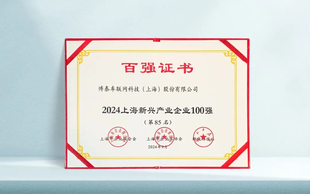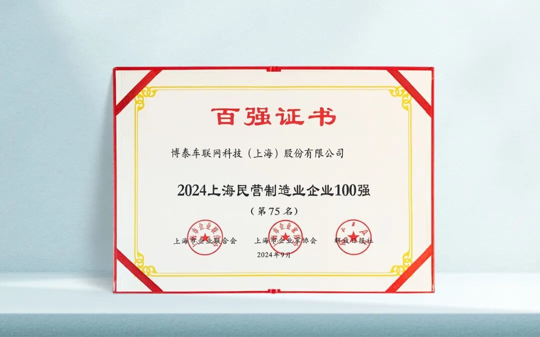 博泰车联网连续四年荣登“上海百强企业榜”,为上海经济高质量发展添砖加瓦