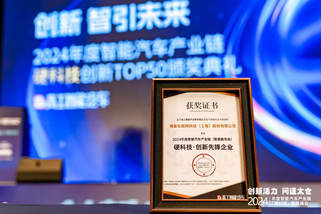 11月21日,2024高工智能汽车产业链峰会在苏州太仓举办,会议同期颁发2024年度智能汽车产业链硬科技创新TOP50,博泰车联网凭借在汽车智能化领域的创新突破,从众多企业中脱颖而出、成功入选。