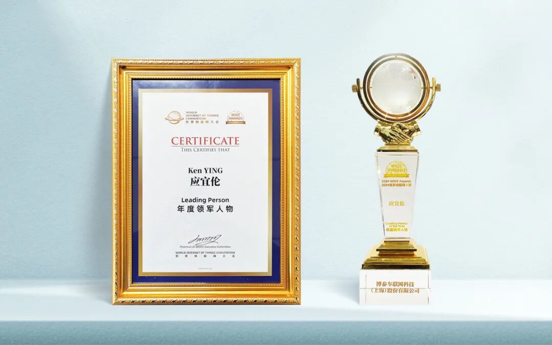 再添荣誉!博泰车联网荣膺2024世界物联网双项大奖 创始人应宜伦获评“年度领军人物”