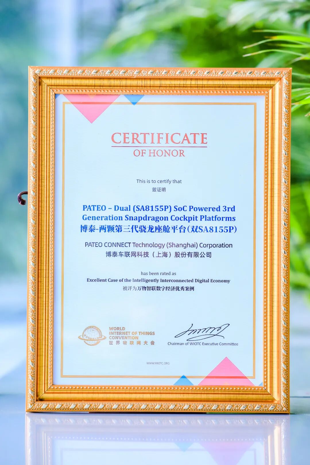 大会同期发布了“2024世界物联网大奖”,博泰车联网创始人、董事长应臻恺(应宜伦)获评“2024世界物联网大奖·年度领军人物”称号。博泰车联网的“智护·健康驾舱解决方案”从众多优秀项目中脱颖而出,获评“2024世界物联网大奖·创新项目奖”,博泰-两颗第三代骁龙座舱平台(双SA8155P)被评为“万物智联数字经济优秀案例”。