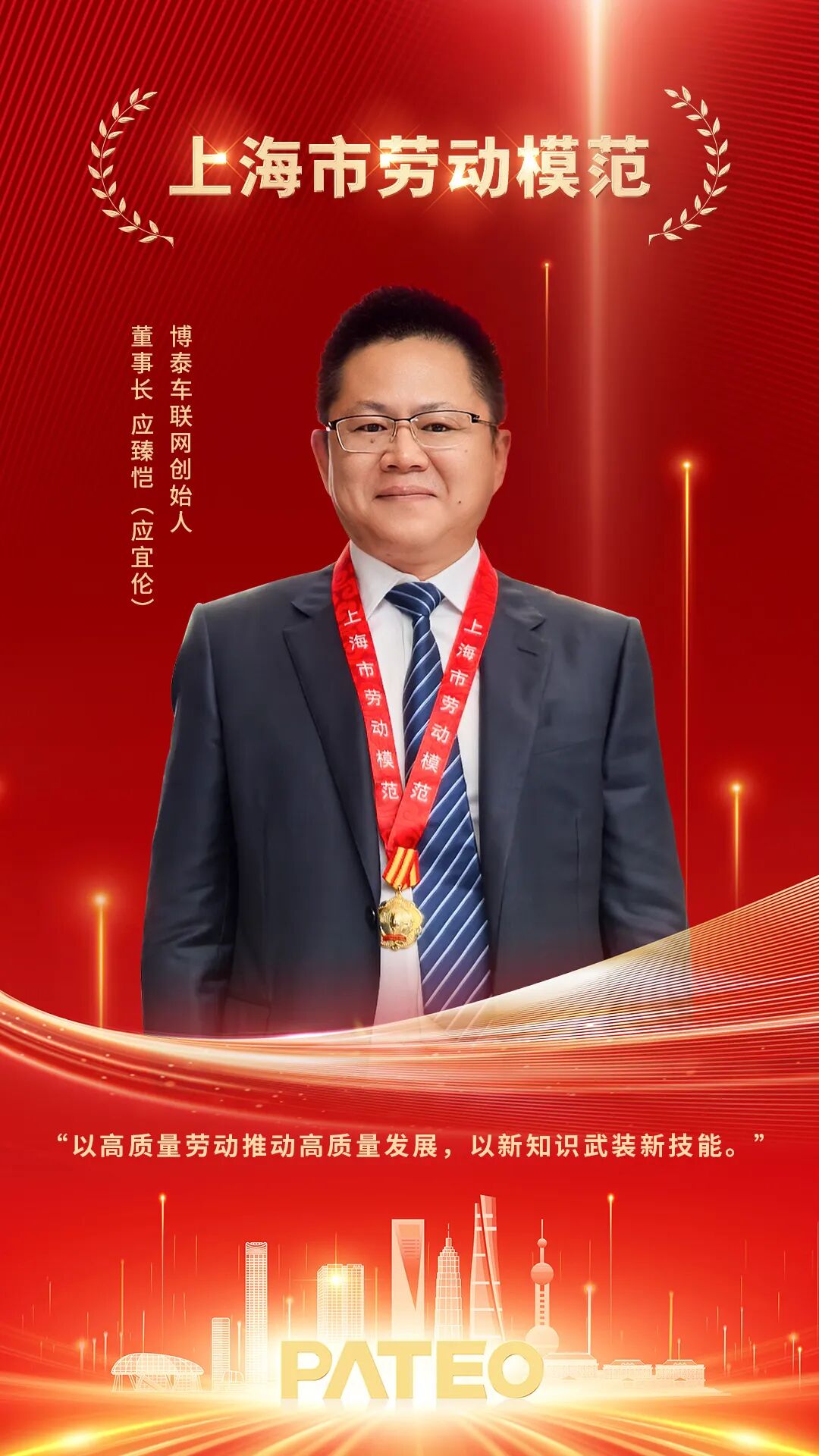 5月9日,庆祝上海总工会100周年暨上海市模范集体、劳动模范和先进工作者表彰大会在世博中心红厅举行。会上,博泰车联网创始人、董事长应臻恺(应宜伦)被授予“上海市劳动模范”称号,以表彰其十几年如一日专注科技创新,带领博泰车联网突破多项技术壁垒、填补行业空白,为推动中国汽车产业智能化转型和实现核心技术自主可控做出的重要贡献。同时,应宜伦也是此次唯一一位以公司创始人身份荣膺“上海市劳动模范”称号的获得者。