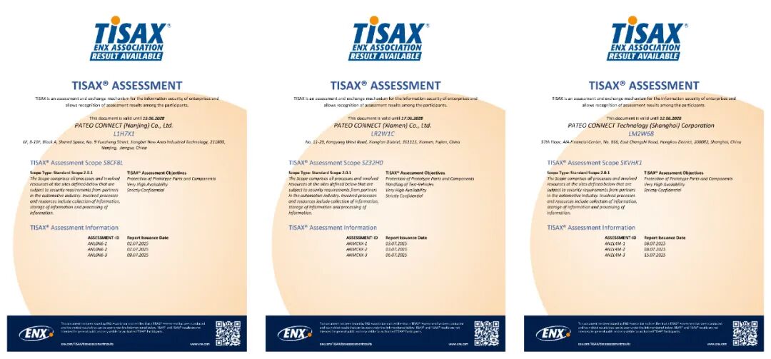 TISAX®(Trusted Information Security Assessment Exchange)由德国汽车工业协会(VDA)与欧洲网络交换所(ENX)共同制定,是汽车行业唯一正式发布且广泛互认的信息安全评估标签机制。该标准全面覆盖产品设计、研发、生产制造及销售服务全价值链,旨在严格保护产业链敏感信息,提升整体安全与合规水平,是进入欧洲及国际车企供应链的核心通行证。博泰此次通过最高等级AL3认证及三项“极高”级别标签,充分印证了其在信息资产保护方面已达到国际顶尖水准。