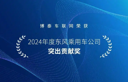 1月10日,在以“聚力向新 质赢未来”为主题的东风乘用车公司2025年供应链合作伙伴大会上,博泰车联网凭借卓越技术实力、创新产品解决方案以及优质服务,获评2024年度东风乘用车公司“突出