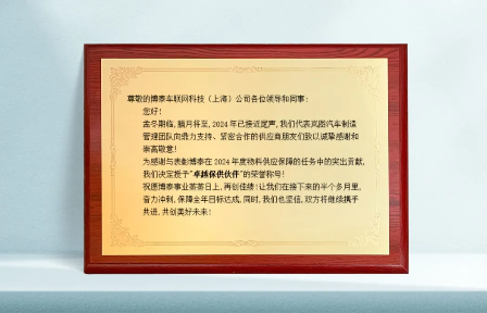 值此新岁之际,回首往昔,凭借深厚的研发实力和不断精进的产品质量,我们赢得了客户广泛认可与高度赞誉,获得东风、一汽、上汽、华为等十项质量和供应商殊荣。